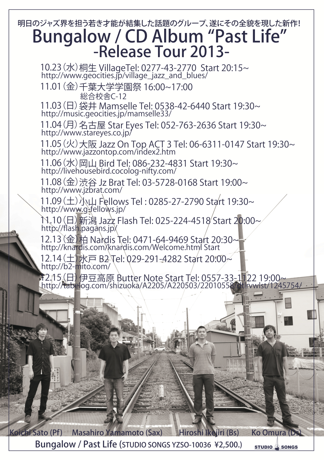 2ndアルバム「Past Life」発売記念ツアー 山本昌広(sax) 佐藤浩一(p) 池尻洋史(b) 大村亘(ds) |